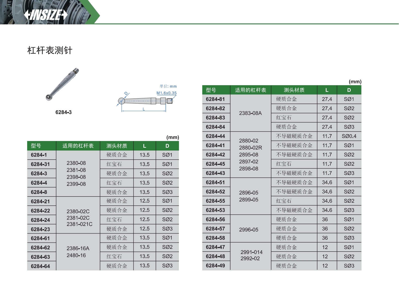 杠杆表测针
