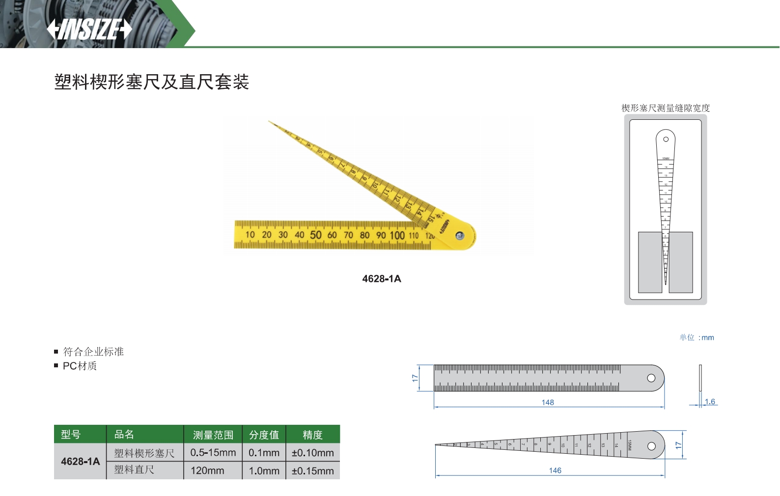 塑料楔形塞尺及直尺套装