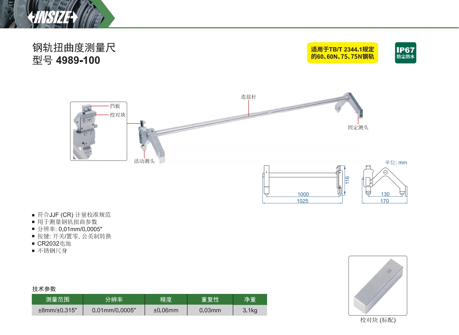 钢轨扭曲度测量尺